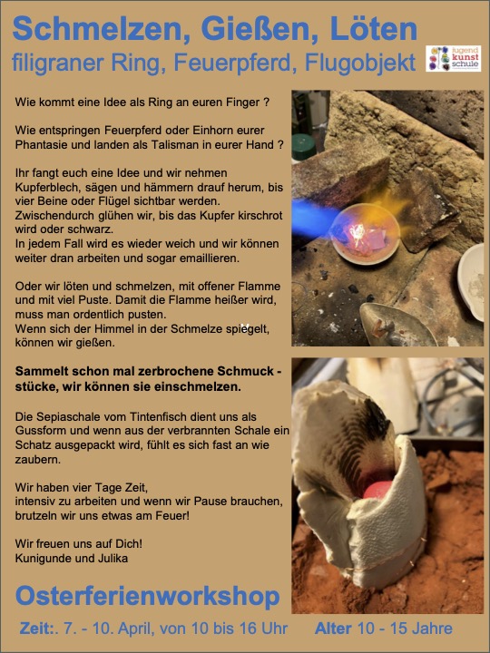 Osterferienworkshop | Schmelzen, Gießen, Löten | filigraner Ring, Feuerpferd, Flugobjekt 9. März 2026Franzi Anmeldung>>>