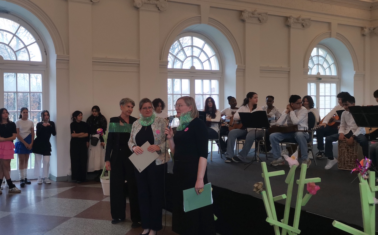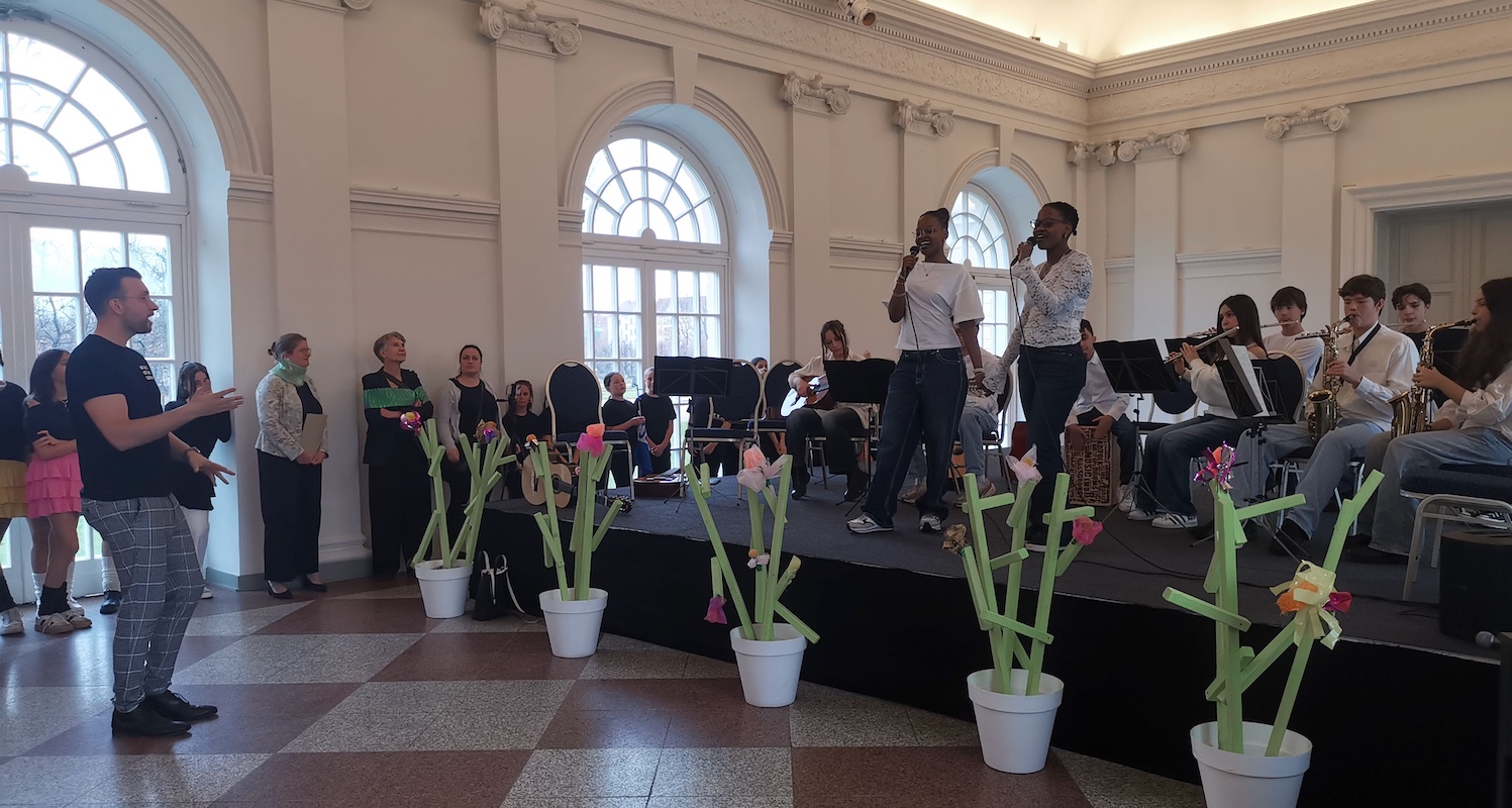 Das Kinder-Kunst-Schlossfest 2025 war wieder eine große Freude! Rund 600 Besucherinnen und Besucher und fast 150 Akteuere waren in der wunderbaren Orangerie des Charlottenburger Schlosses: Die Bezirksstadträtin Frau Schmitt-Schmelz und die Direktorin der Abteilung Bildung und Marketing der SPSG Frau Hagenberg haben begrüßt und Kinder und Jugendliche der Friedensburg-Oberschule, des Hildegard-Wegscheider Gymnasiums und der Dietrich-Bonhöffer-Grundschule haben ein buntes Bühnenprogramm dargeboten- das auf begeisterte Bewunderung traf!